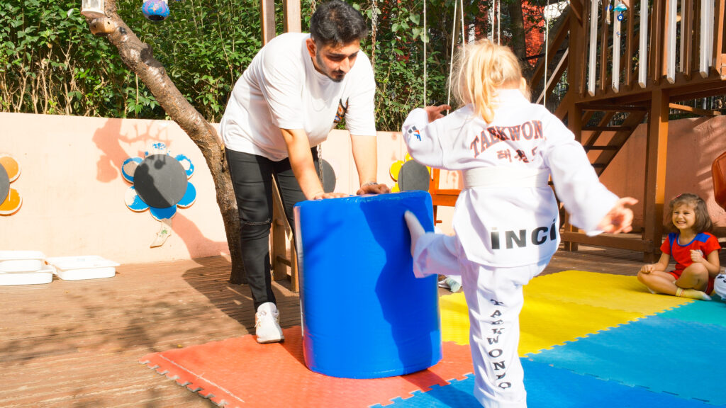 Taekwondo dersleri gruplar halinde 40-50 dakika süren seanslar şeklinde gerçekleştirilir. Haftada bir ders, alanında uzman ve deneyimli antrenörler tarafından verilir. Dersler, özel Taekwondo kıyafeti olan DABOK ile yapılır. Öğrencilerin seviyesi belirlenir, buna göre haftalık ders programı hazırlanır. Tecrübe edilmiş ve başarısı gözlemlenmiş müfredat ile bir eğitim yılı sonunda aşağıdaki hedeflere ulaşılır: