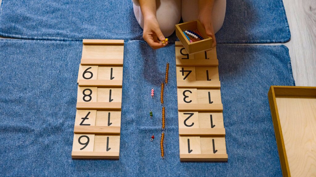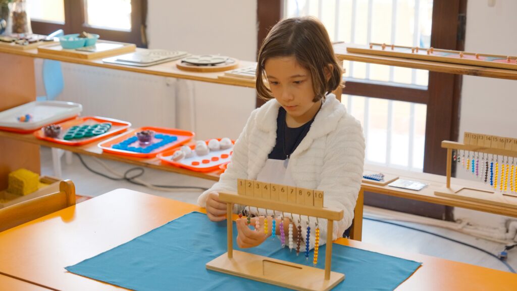 Montessori materyallerinden sayı boncukları ile çalıştık