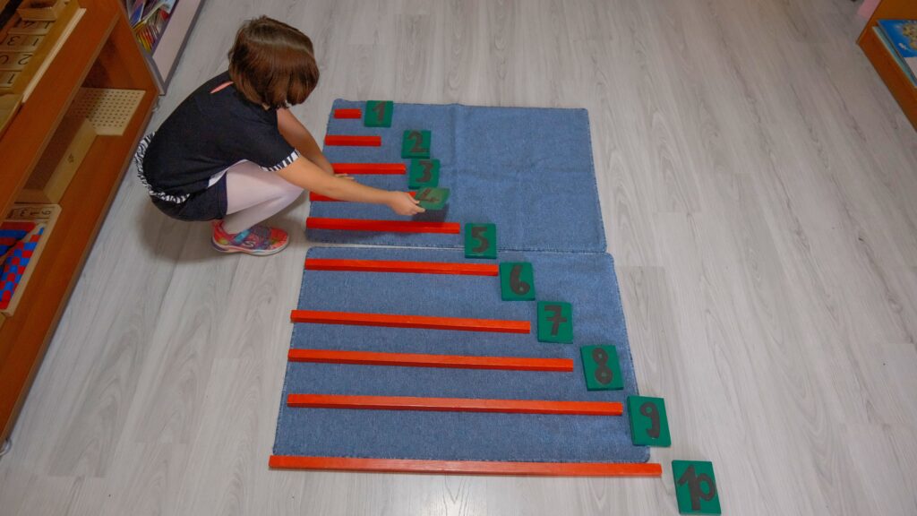 Matematik materyallerinden kırmızı cubuklarla sayı çalıştık
